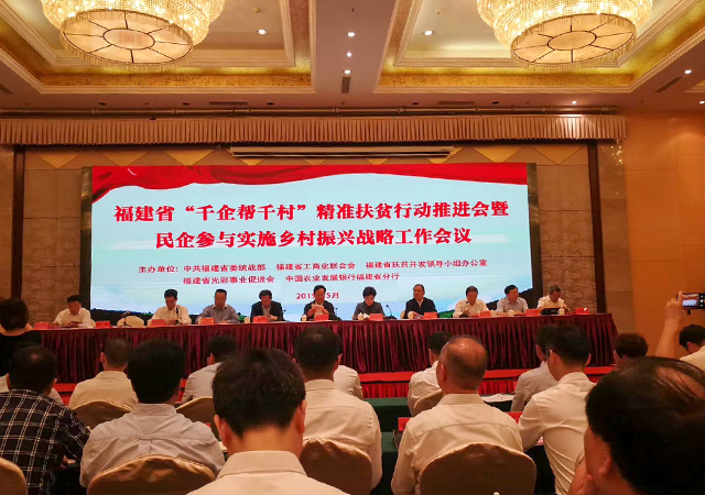 5月23日,福建省“千企幫千村”精準扶貧行動推進會暨民企參與實施鄉(xiāng)村振興戰(zhàn)略工作會議在福州永泰召開。會上表彰了一批“千企幫千村”工作先進企業(yè)、商會,發(fā)出助力蘇區(qū)老區(qū)脫貧攻堅和參與實施鄉(xiāng)村振興戰(zhàn)略的倡議,舉行鄉(xiāng)村振興結(jié)對幫扶簽約儀式。